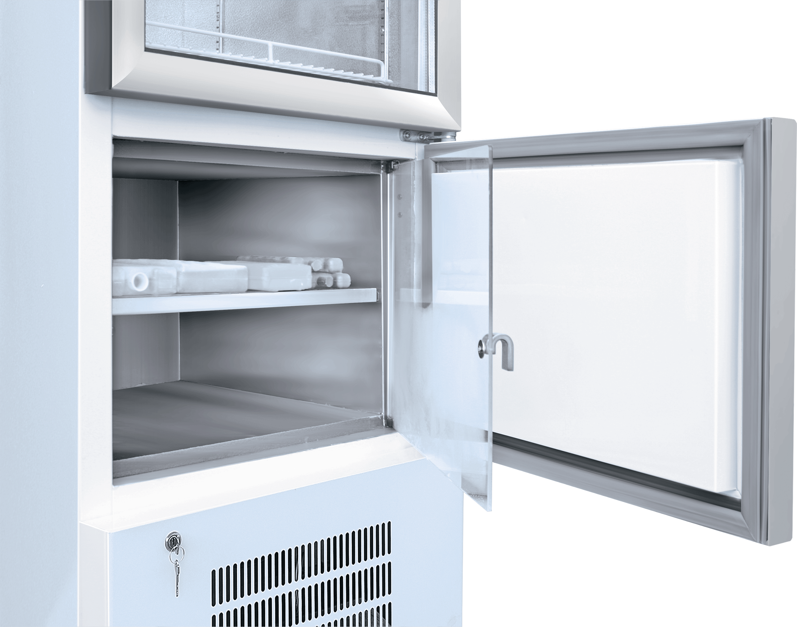 - The door of the device has double thermal glazing, it can be locked and has magnetic seal rings. Thus, it provides an opportunity to trace the stocks. The deep freezer door section has polyurethane insulated block-door system.