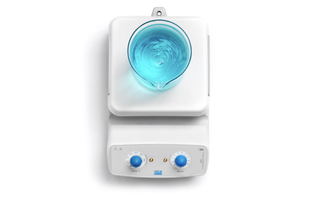 The HSC stirs aqueous solutions from 50 up to 1300 rpm being a suitable solution for general laboratory applications performed in chemistry and biology in academia and laboratories.