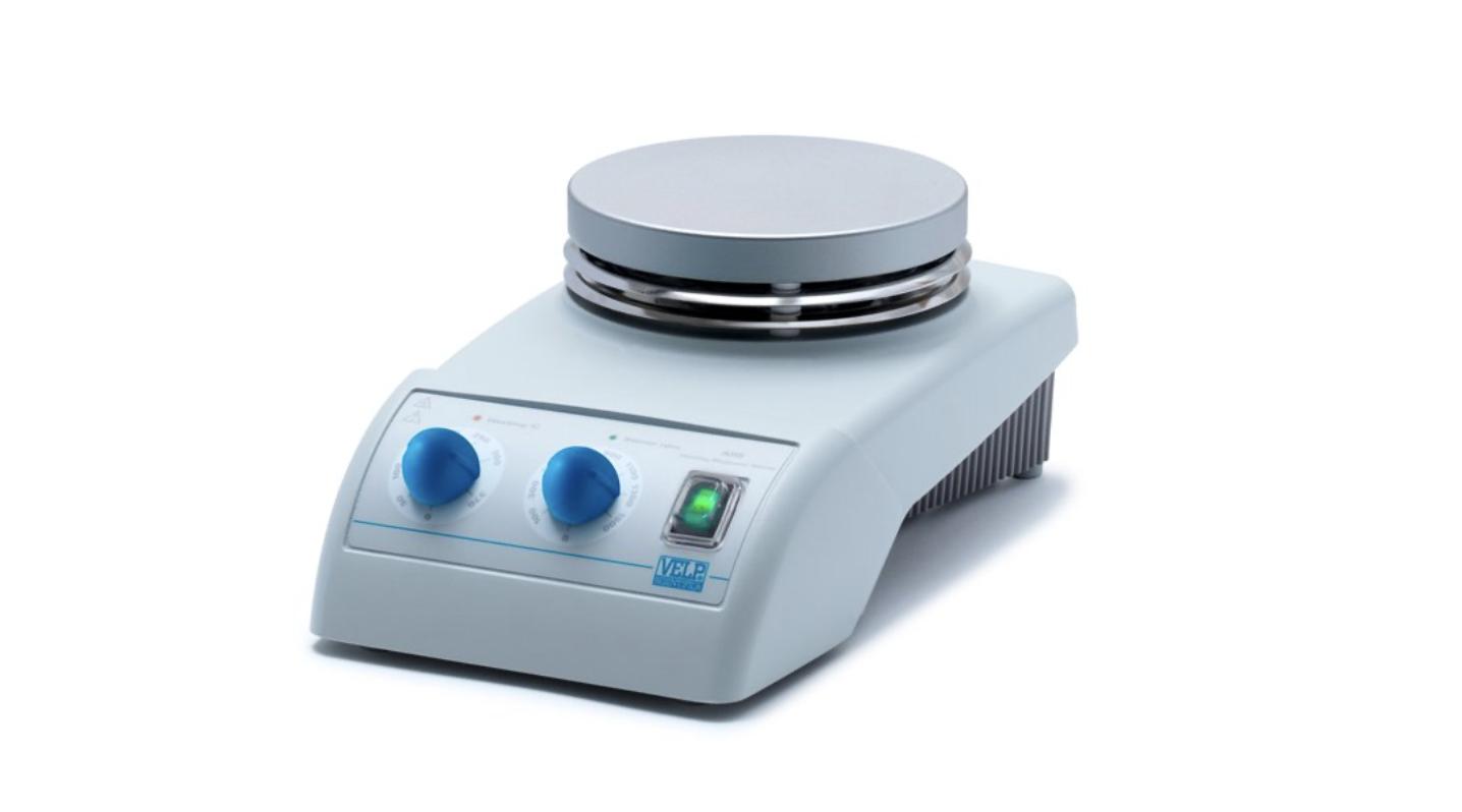 Sıcak plakalı karıştırıcının sol düğmesini çevirerek sıcaklığı ayarlamak (370 °C'ye kadar), sağ düğme ise karıştırma hızını (1500 rpm'ye kadar) kontrol etmek mümkündür.