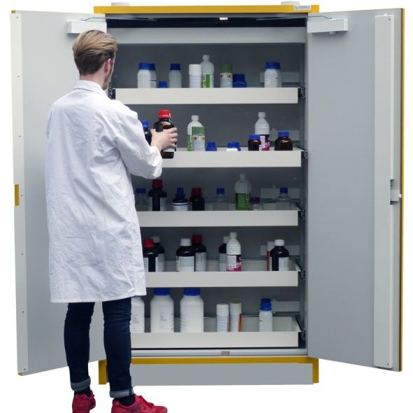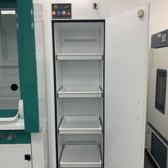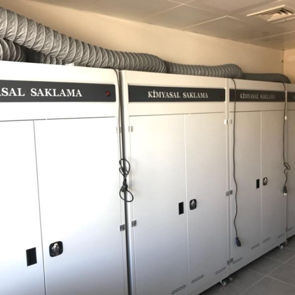 Gelişen kalite ve standartlar gereğince laboratuvar koşullarında iyileştirmeler durmaksızın devam etmekte. Özellikle İş Sağlığı ve Güvenliği kapsamında laboratuvar ortamında bulunan kimyasal maddeler için çok sıkı tedbirler alınmaktadır. Kimyasal maddeler; laboratuvar ortamına girişinden, kullanım şekli, depolanması, atıkların uzaklaştırması gibi aşamaları belirli prosedürler kapsamında değerlendirilir. Kimyasal maddeler niteliklerine göre çeşitli kaplarda muhafaza edilir fakat depolama prosedürünü tamamlamak için bu yeterli değildir. Zamanla ortama zehirli gaz salınımı olması nedeniyle özel kimyasal madde saklama dolaplarında depolanması gerekir.